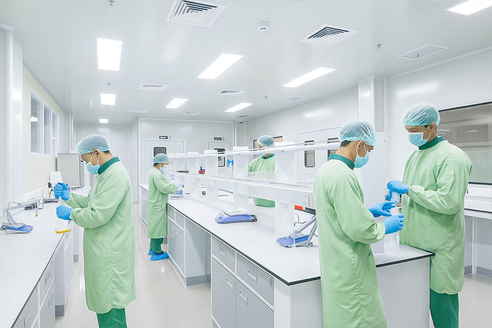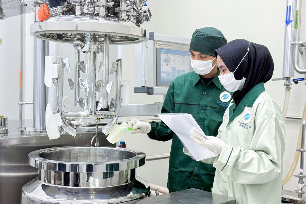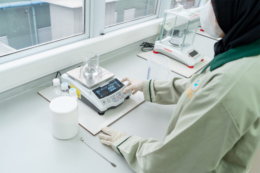 Kami memiliki fasilitas produksi berstandar GMP (Good Manufacturing Practice) yang mampu memproduksi dalam skala kecil hingga besar, dengan kontrol kualitas yang ketat di setiap tahap proses.